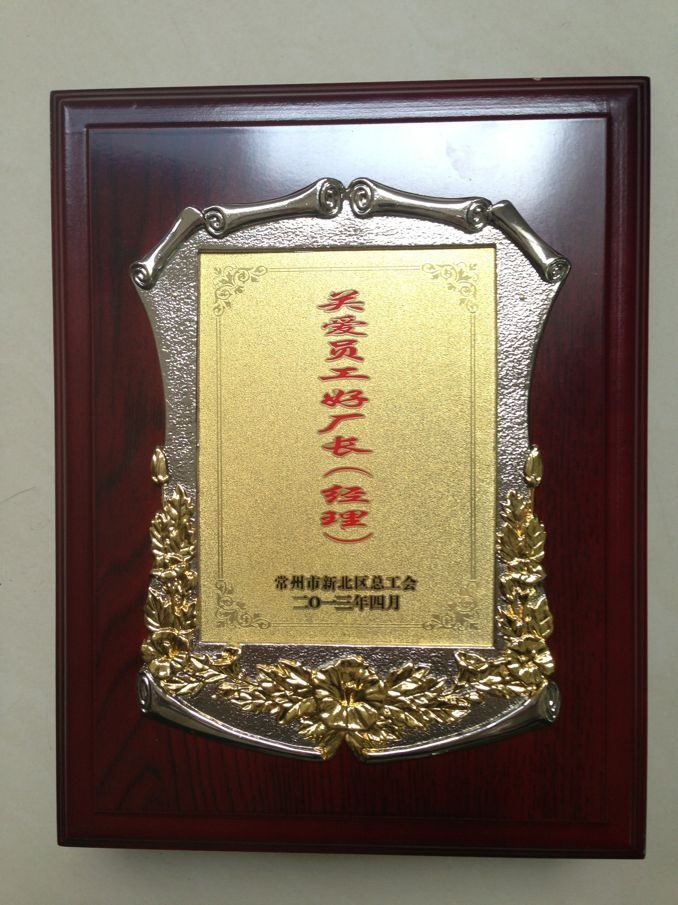 通过各级工会和基层单位的推荐,我司总经理施全彬荣获“关爱员工好厂长(经理)”称号。4月22日,总经理施全彬从总工会会长手中接过授予的铜牌。